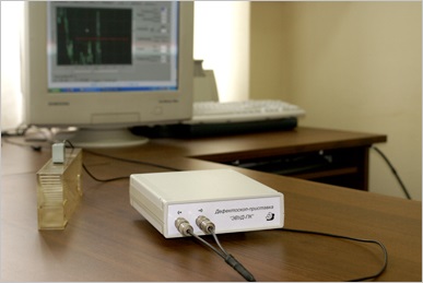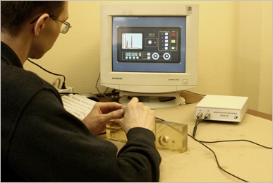 На компьютер устанавливается программа, отображающая на мониторе эхо-сигналы, управляющая режимами измерения и настройки (усиление, длительность и задержка развертки и др.) и производящая измерение параметров эхо-сигнала.