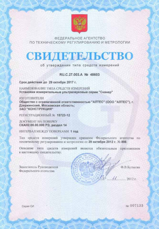 Техническое оборудование успешно прошло оценку качества на государственном уровне и получило положительные оценки от компаний, работающих в разнообразных секторах экономики. Устройство ИУ "СКАРУЧ" получило сертификат соответствия от Госстандарта России, внесено в официальный перечень зарегистрированных измерительных инструментов (с идентификационным номером 15723-02) и получило разрешение для использования на территории РФ. Процедуру использования данного устройства одобрил Ростехнадзор РФ, что позволяет его использовать на объектах, находящихся под его контролем.