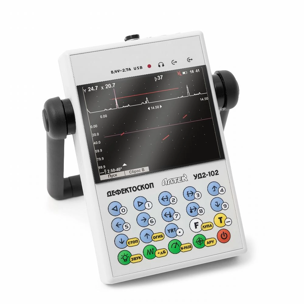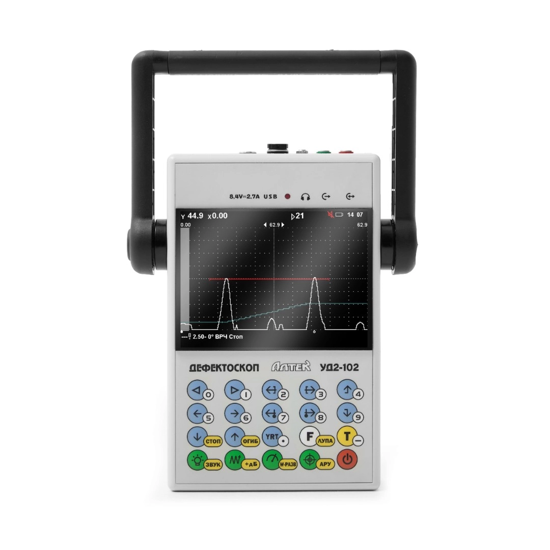 Дефектоскоп «АЛТЕК» УД2-102 предназначен для ультразвукового контроля основного металла и сварных соединений листовых элементов, труб, котлов, ответственных деталей судостроительной, авиационной промышленности, деталей подвижного состава и других конструкций, обеспечивает выявления дефектов типа нарушения сплошности (трещины, поры и другие) в изделиях из металла и других материалов с измерением и регистрацией в памяти дефектоскопа характеристик выявленных дефектов (амплитуда отраженного сигнала, координаты и другие) при контроле вручную и (или) с использованием устройств сканирования в соответствии с предварительно созданными и запомненными настройками.