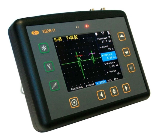 Аппарат для контрольной диагностики создан с целью выявления неисправностей (повреждений целостности и гомогенности материала) как в процессе формирования изделий, так и в уже сформированных продуктах и элементах сварки. Он способен точно определять глубину и точные координаты местоположения неисправностей, производить замер толщины и скорость распространения звуковых волн высокой частоты (УЗВ) внутри материала во время осуществления проверки качества.