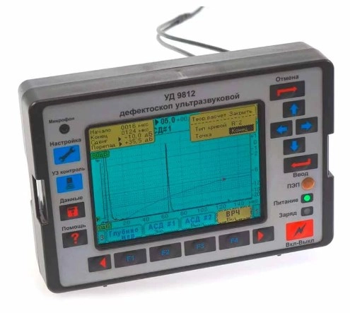 Устройство УД9812 занимается фиксацией задержек ультразвуковых волн, а также оценивает их амплитуду в децибелах, определяя координаты и размеры обнаруженных неточностей в материале.