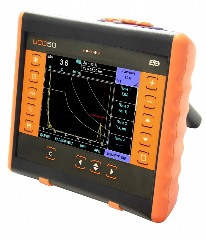 Ультразвуковой дефектоскоп нового поколения УСД-50 IPS в специально разработанном ударопрочном корпусе с классом защиты IP65 представляет собой симбиоз суперсовременной электронной архитектуры и новейших программных подходов к обработке сигналов.