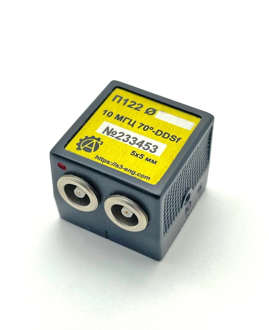 Наклонные раздельно-совмещенные преобразователи с углом ввода от 65 до 74 градусов предназначены для контроля сварных швов и изделий малой толщины. Призмы преобразователей могут быть изготовлены как из оргстекла так и из износостойкого полимера. Конструкция преобразователей допускает притирку для контроля стыков диаметром от 12 мм и более. Все преобразователи имеют корпус из износостойкого пластика или алюминия и разъем Lemo 00. Выпускаются в соответствии с ТУ 427610-002-4407661-2016 «Ультразвуковые пьезоэлектрические преобразователи. Общие технические требования».