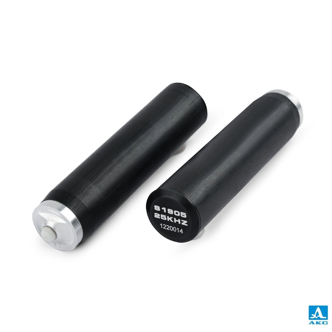Частота – 25 кГц. Для возбуждения продольных волн; низкочастотный с сухим точечным контактом.