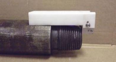 Используемые преобразователи озвучивают тело резьбовой части замковых соединений бурильных труб, надежно выявляя трещины. Щелевой контакт обеспечивается контактной жидкостью (водой), которая подается по эластичному шлангу, надеваемому на втулку корпуса преобразователя, и заполняет зазор между преобразователем и объектом контроля.