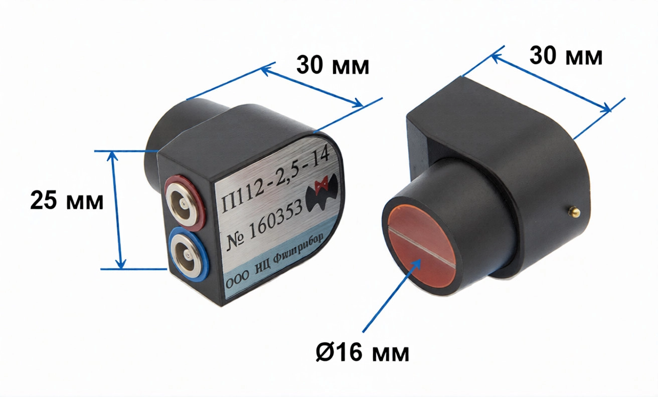| П112-2,5-14 | 2,5 МГц | Ø 14/2 мм | 1,3мкс | 46 дБ | 5 – 60 мм |