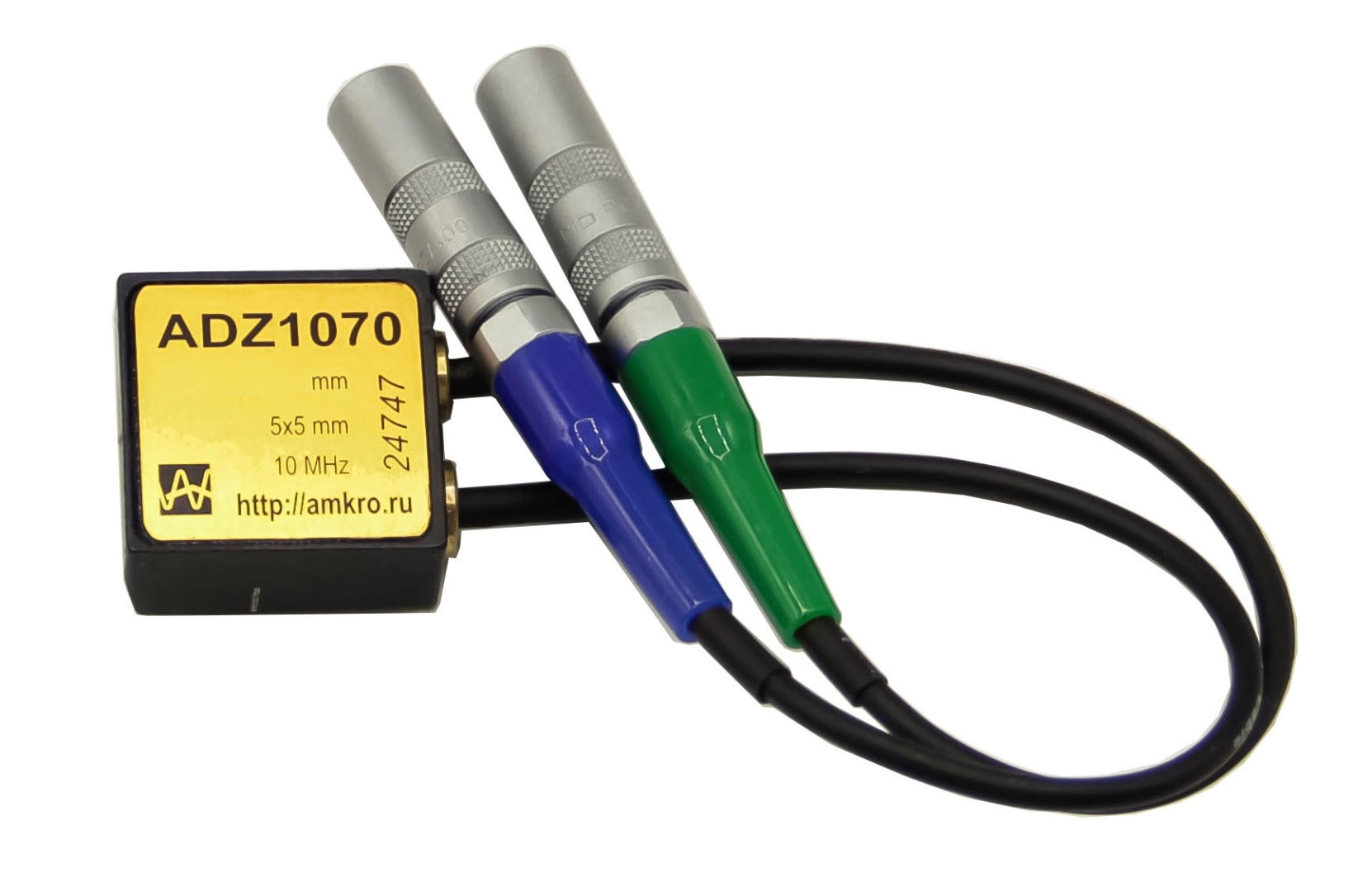 Преобразователь наклонный раздельно-совмещенный миниатюрный поперечных волн. Маркировка по ГОСТ: П122-10-ХХ-ММ, где XX — угол ввода поперечной (сдвиговой) волны в сталь 20.
