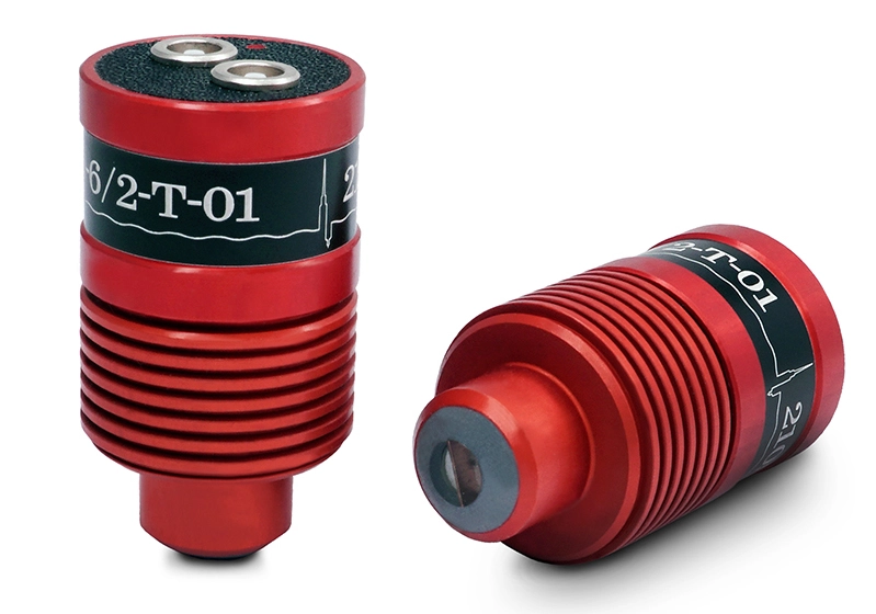 Преобразователь высокотемпературный прямой раздельно-совмещенный 10 МГц для контроля толщины изделий с температурой поверхности до 350 °С.