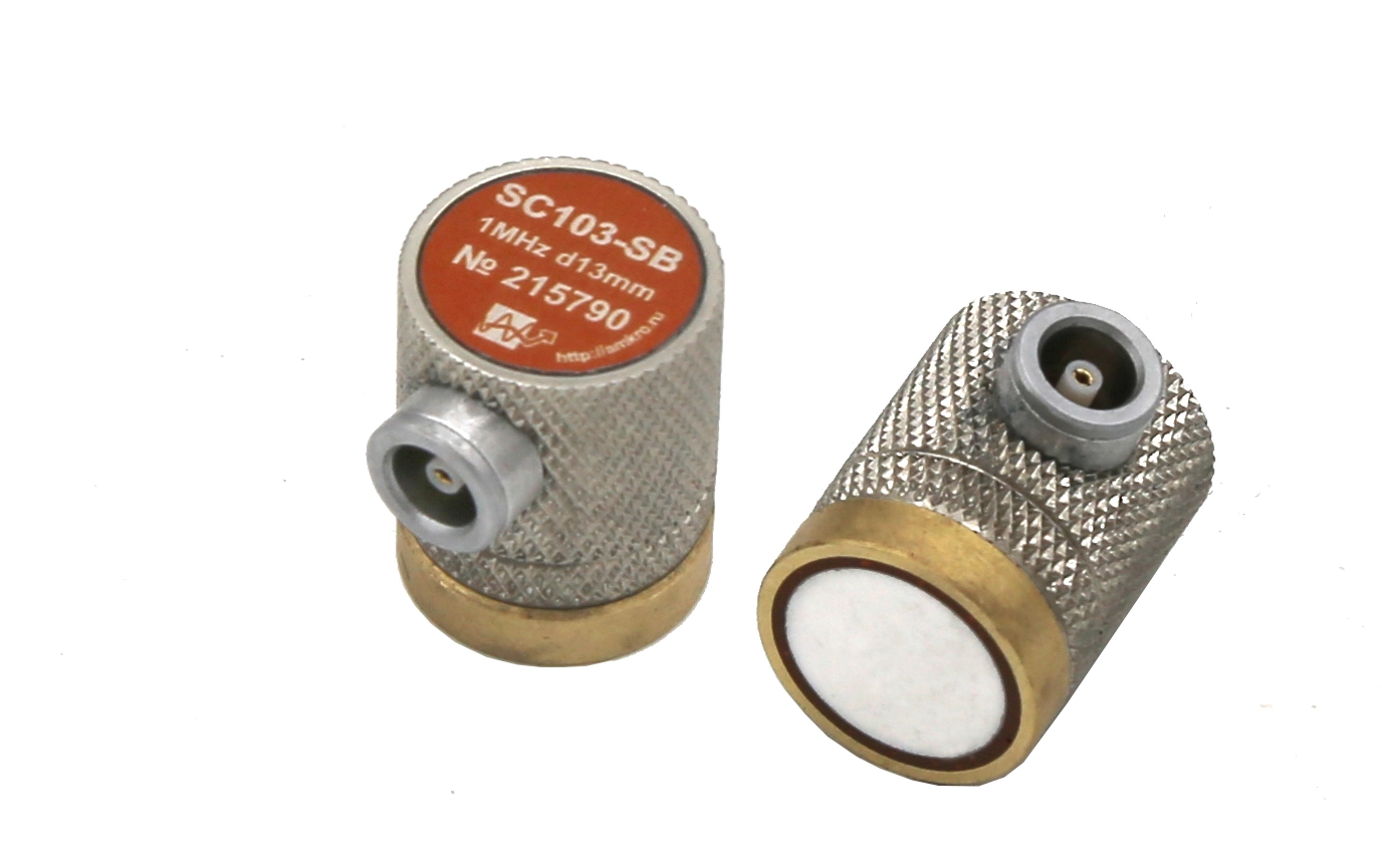 SС103-RB — среднедемпфированный ультразвуковой контактный совмещенный преобразователь с керамической защитной поверхностью.