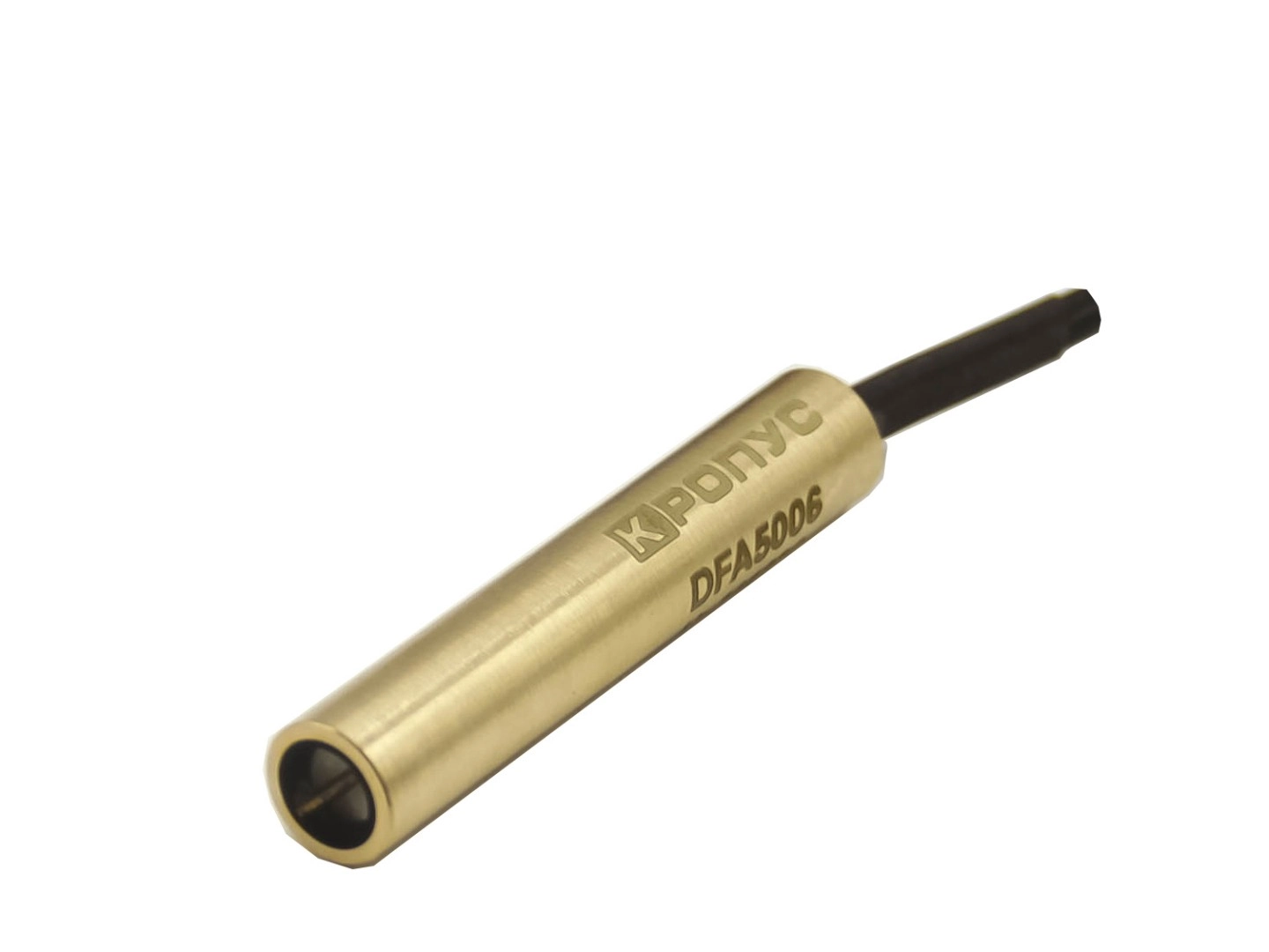 Преобразователь ультразвуковой специальный DFA5006, предназначен для дефектоскопии и толщинометрии труднодоступных мест (пазов, отверстий) диаметром не менее 9 мм и глубиной не более 40-45 мм. Также устанавливается в различные радиусные призмы для контроля цилиндрических изделий.