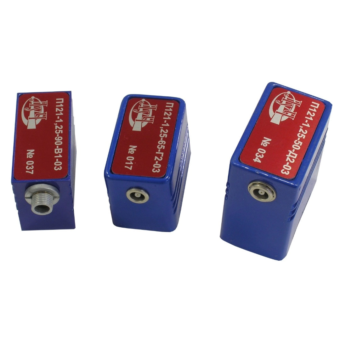 Преобразователи наклонные контактные совмещенные типа П121 предназначены для ультразвуковой дефектоскопии. Преобразователи могут быть изготовлены для любых типов дефектоскопов. В зависимости от размеров пьезоэлемента (ПЭ) преобразователи разделены на серии 1 .... 3 и изготавливаются в различных корпусах (В ... Д). По умолчанию ПЭП поставляется с горизонтальным расположением разъема. Возможно индивидуальное изготовление ПЭП с вертикальным расположением разъема.
