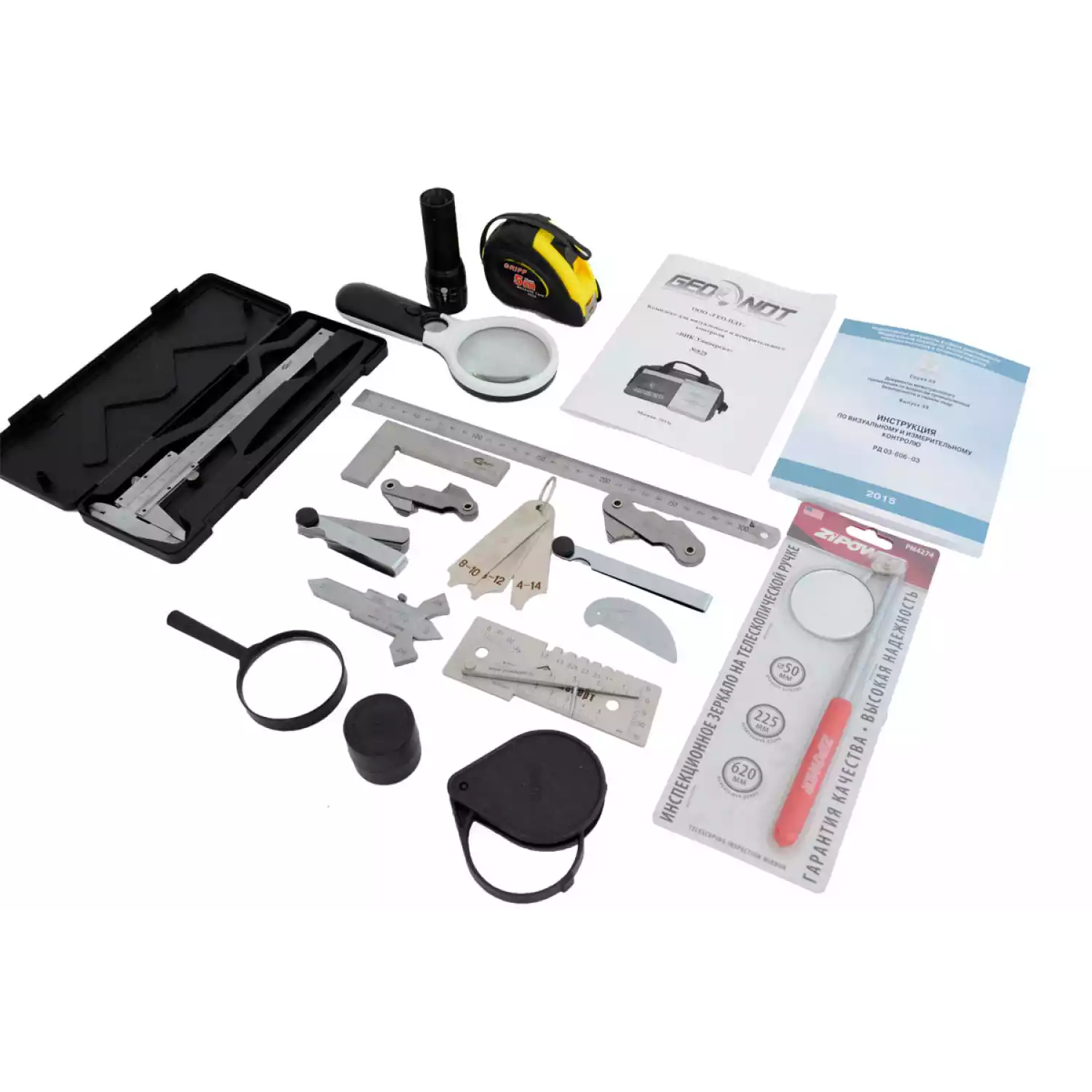 Комплект ВИК представляет собой набор измерительных инструментов и принадлежностей для проведения визуального и измерительного неразрушающего контроля в соответствии с руководящим документом РД 03-606-03.