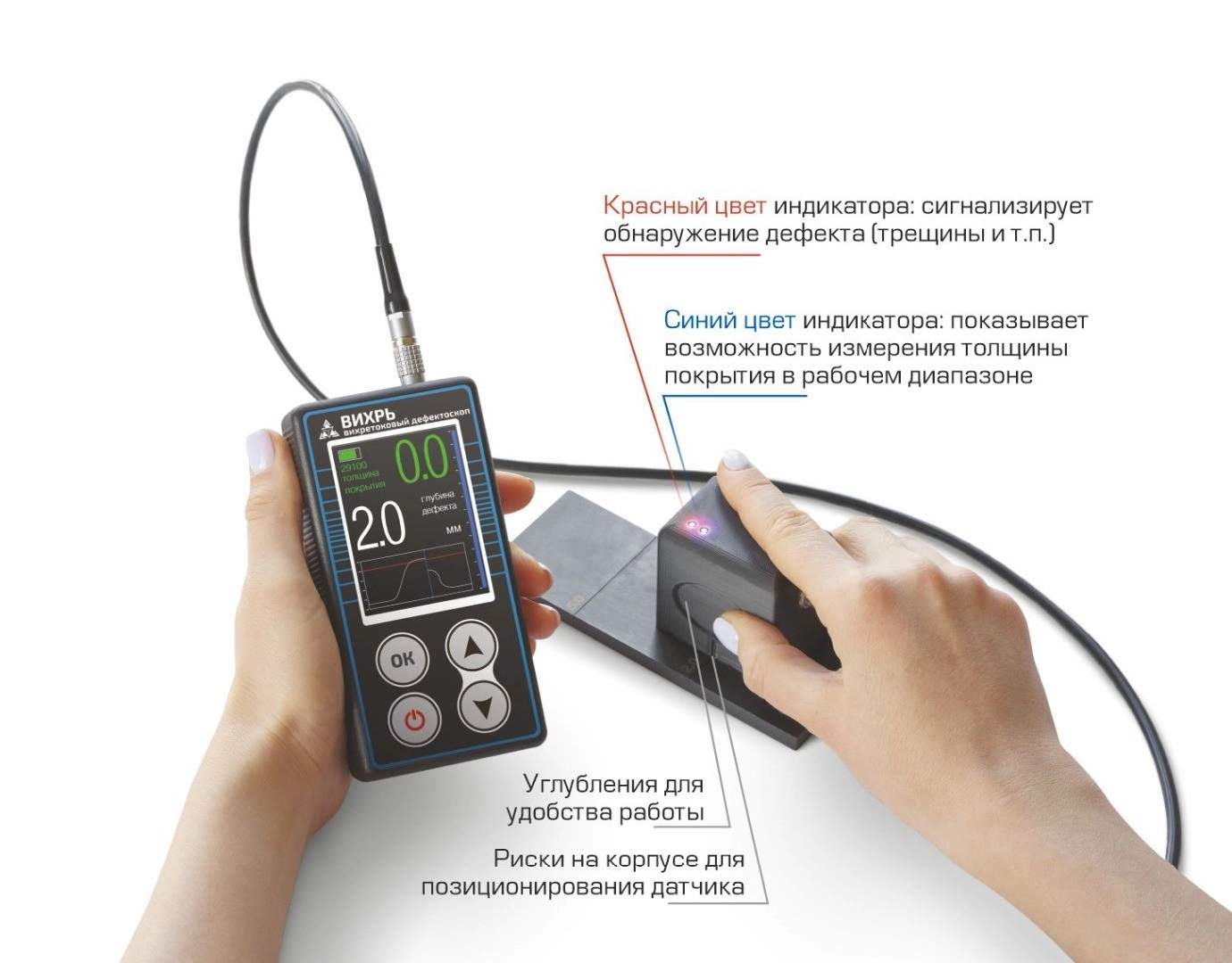 Многофункциональный магнитно-вихретоковый дефектоскоп Вихрь выявляет и измеряет глубину стресс-коррозионных трещин в металлических ферромагнитных конструкциях, в том числе под слоем коррозии и/или защитного покрытия., а также толщину изоляции. Измерения проводятся с минимальной погрешностью.