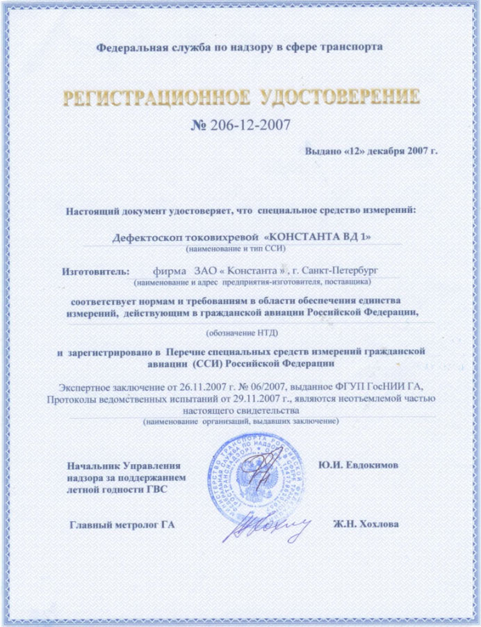 Широкий набор специализированных преобразователей и контрольных образцов для дефектоскопии деталей летательных аппаратов позволяет производить контроль в соответствии с методиками, утвержденными ФГУП ГосНИИ ГА и разработчиками воздушных судов и авиационных двигателей.