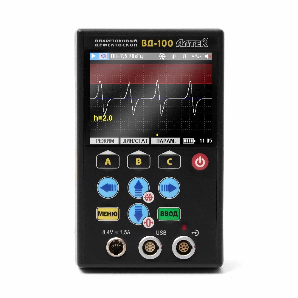Дефектоскоп вихретоковый Алтек ВД-100 предназначен для измерений глубины поверхностных дефектов в объектах контроля, изготовленных из ферромагнитных и неферромагнитных сталей, цветных металлов и их сплавов.