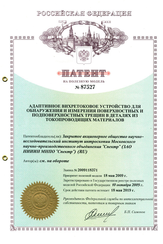 Устройство позволяет обнаруживать трещины и микротрещины различного происхождения, в том числе вызванные стресс-коррозией, даже при наличии непроводящих зазоров (через лакокрасочные, изоляционные покрытия, загрязнения) и без непосредственного контакта с поверхностью изделия.
