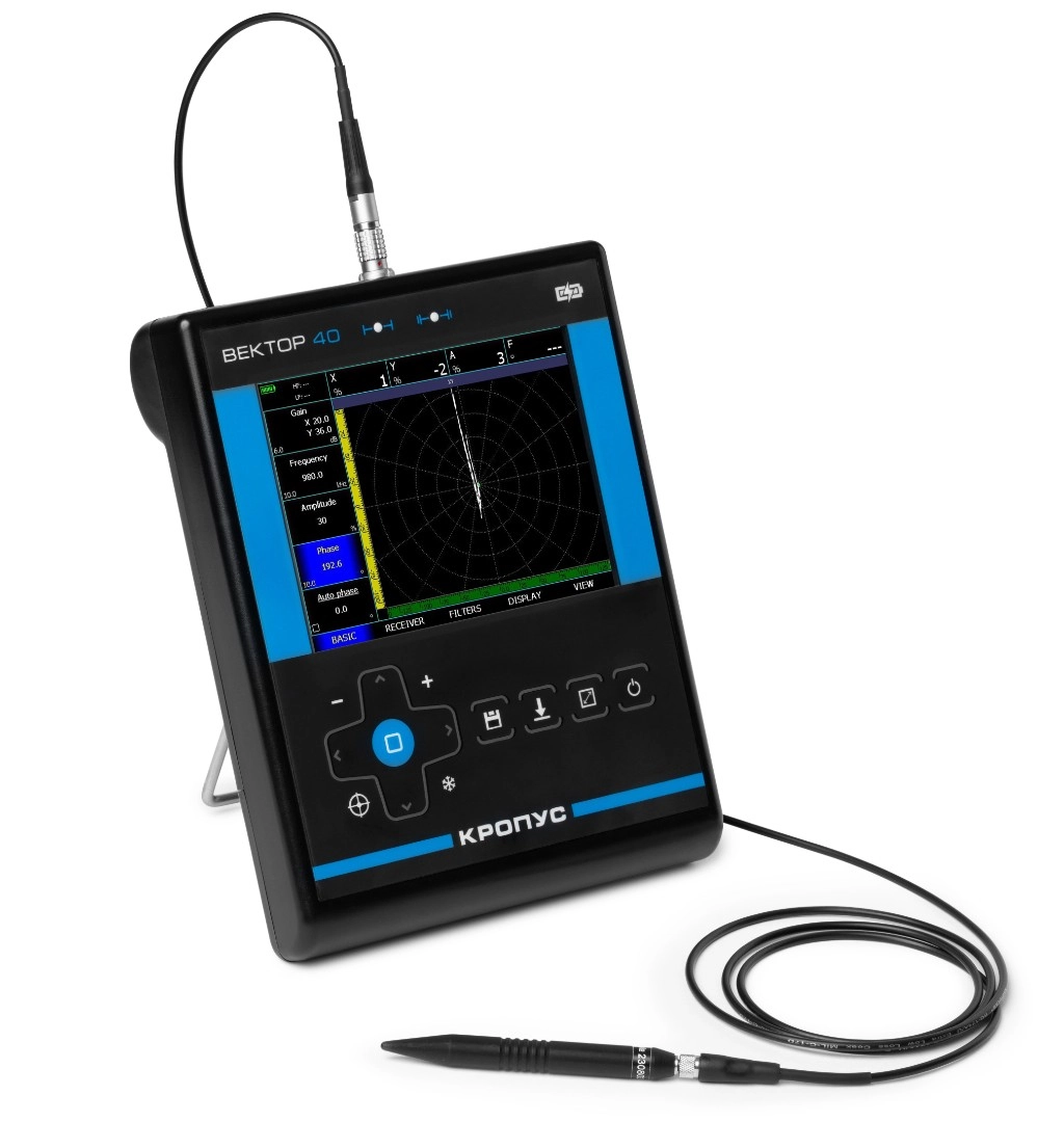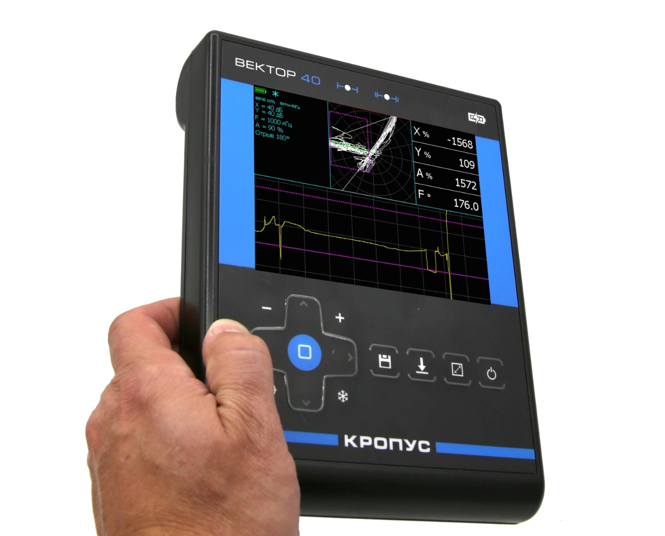 Новый вихретоковый дефектоскоп ВЕКТОР версии 40 представляет собой портативный и легкий современный прибор с прямой оцифровкой сигнала.