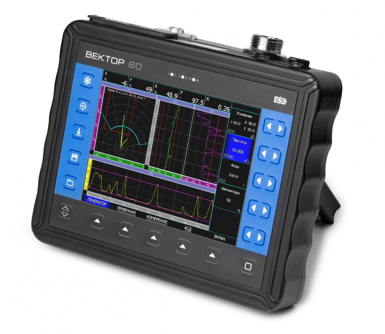Новый многоканальный многочастотный вихретоковый дефектоскоп ВЕКТОР-60 предназначен для ручного и механизированого контроля металлопродукции на наличие дефектов