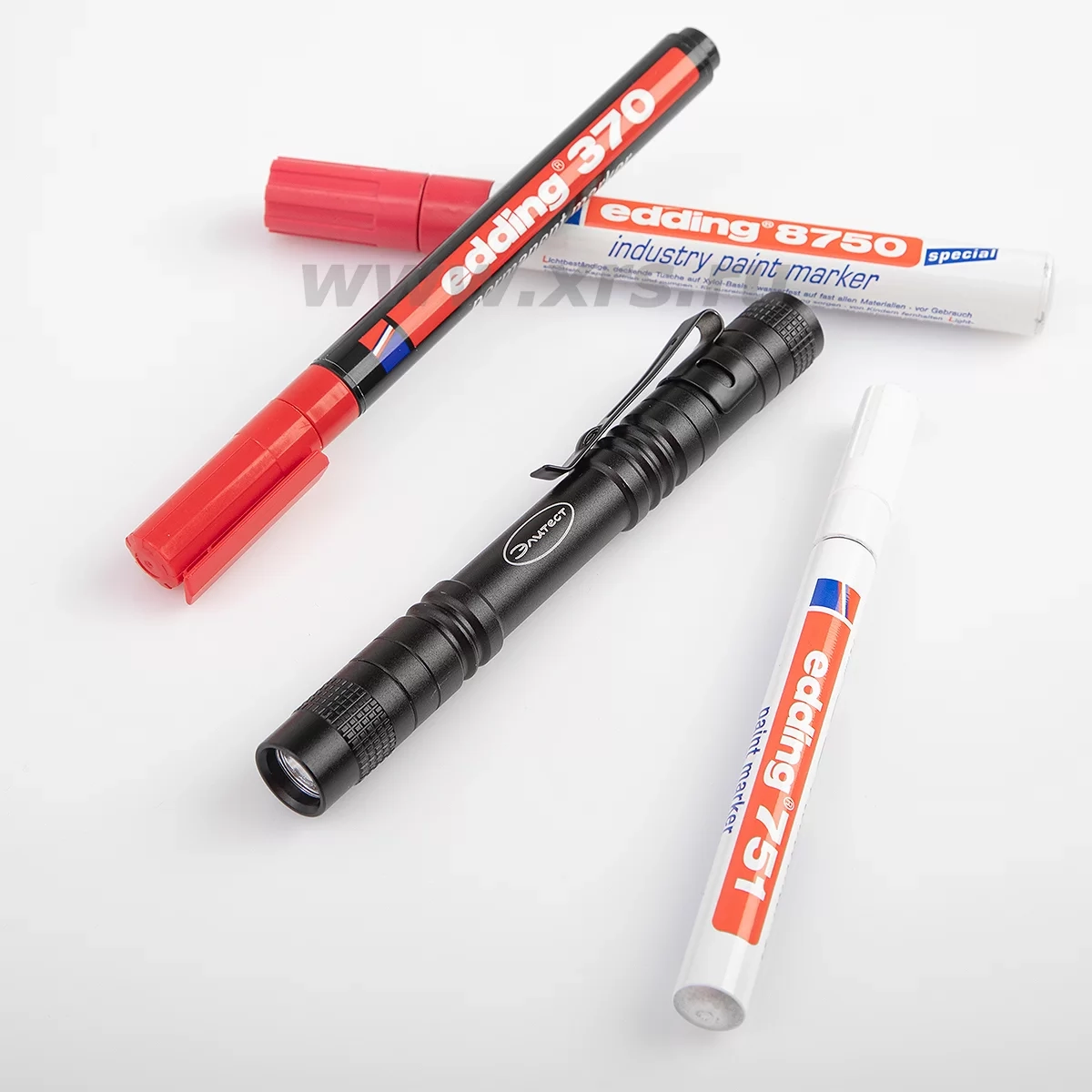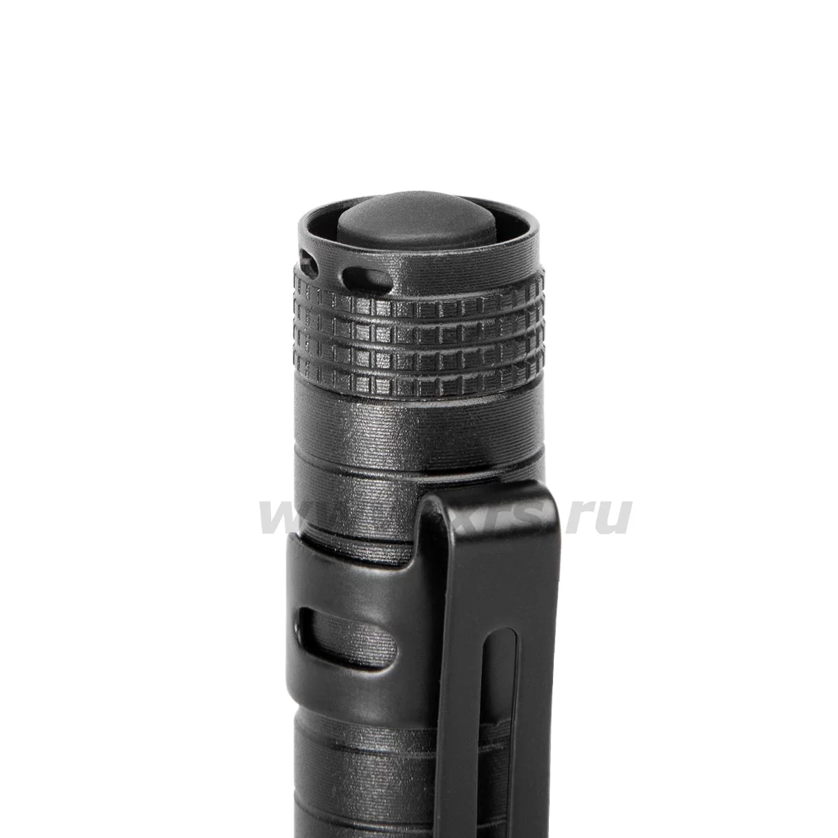 Фонарь очень компактен, выглядит как шариковая ручка. Его удобно носить с собой, прикрепив на ремни или одежду с помощью клипсы. Рядом с кнопкой включения есть отверстие для ремешка. Корпус выполнен из алюминиевого сплава с горизонтальной шлифовкой, благодаря чему фонарь не скользит в руке. Питание фонаря осуществляется от двух батареек типоразмера ААА (входят в комплект поставки).