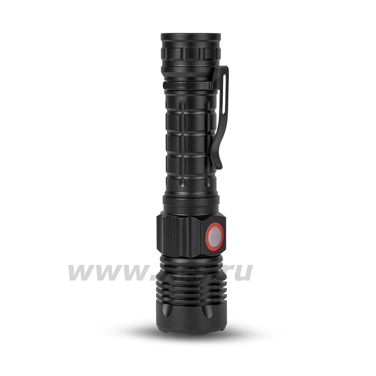 Корпус выполнен из алюминиевого сплава с горизонтальной шлифовкой благодаря чему фонарь не скользит в руке и не изнашивается. Оснащен ручным телескопическим зумом, который фокусирует или рассеивает световой поток. С помощью клипсы на корпусе можно прикрепить фонарь к карману или сумке. Степень защиты IPX4 позволяет использовать фонарь в дождь.