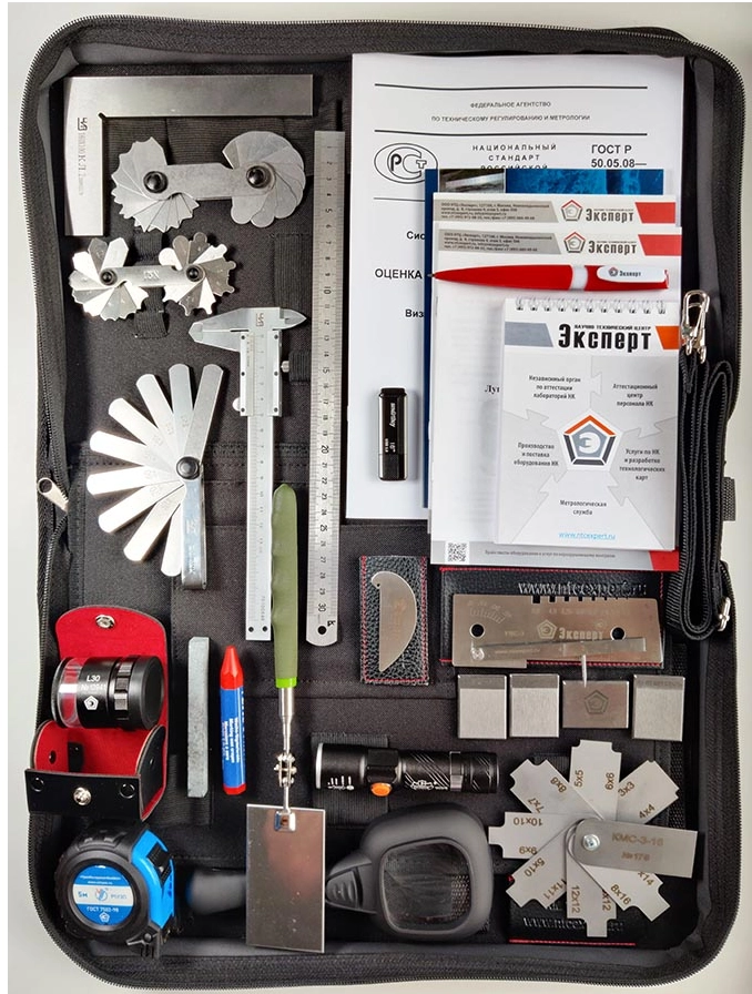 Комплект ВИК «Атомщик» укомплектован набором инструментов в соответствии с ГОСТ Р 50.05.08-2018 (взамен ПНАЭ Г-7-016-89, РБ-089-14), устанавливающим унифицированную методику визуального и измерительного контроля в области использования атомной энергии. Комплект поставляется с документами по метрологической аттестации и методичкой по визуальному контролю в атомной отрасли. По заявке возможна комплектация дополнительными средствами контроля из приложения Б ГОСТ Р 50.05.08-2018. Набор изготовлен по ТУ 26.51.66-001-61670358-2023. Набор поставляется со свидетельством о поверке собственной метрологической службы и флешкой, содержащей образцы техкарт, актов и журналов ВИК, учебники по визуальному контролю и сварке, а так же нормативные акты по данной теме.
