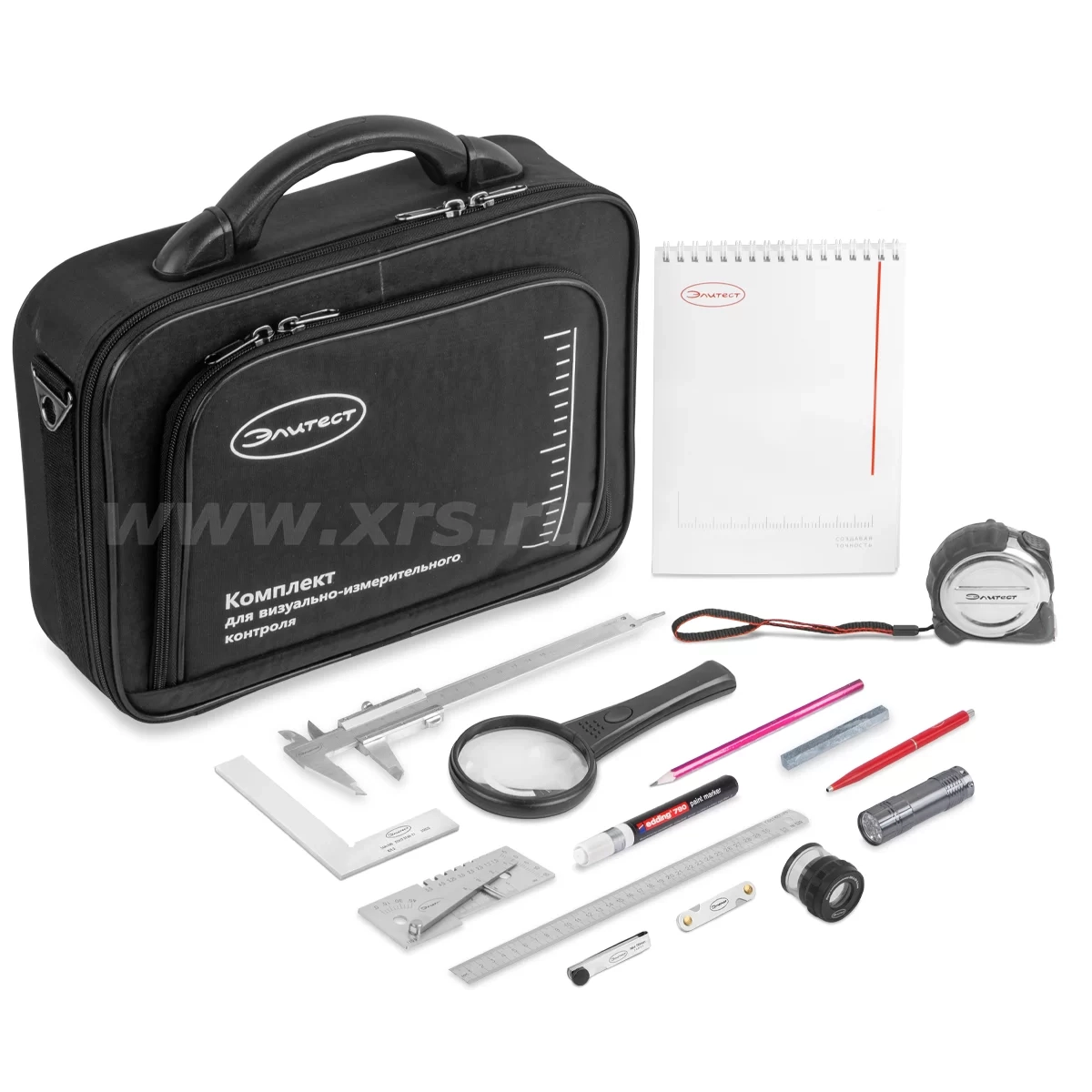 Набор инструментов для ВИК Элитест «Базовый» комплектуется в специальную сумку, изготовленную из прочных и влагостойких материалов. По желанию покупателя стандартный набор будет дополнен другими средствами контроля из каталога.