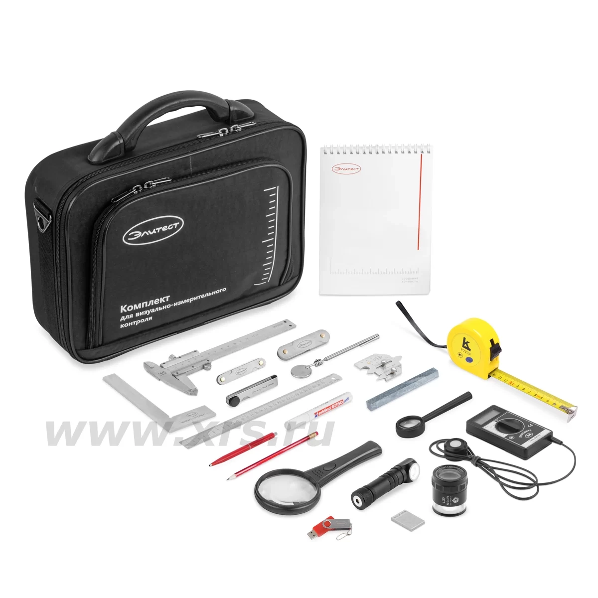 Измерительный контроль (ИК) проводятся на предмет соответствия производственно-технической документации (ПТД) параметров швов и одиночных несплошностей. Для осуществления ИК в комплекте ВИК Элитест «Транснефть» предусмотрены следующие мерительные инструменты: измерительная лупа, измеритель сварных швов, штангенциркуль, линейка, наборы щупов и радиусных шаблонов, угольник, рулетка и образец шероховатости. Общие требования к ИК перечислены в РД-25.160.10-КТН-016-15 (таблица 8.2). Для проверки освещенности объекта контроля в наборе ВИК Элитест «Транснефть» предусмотрен люксметр.