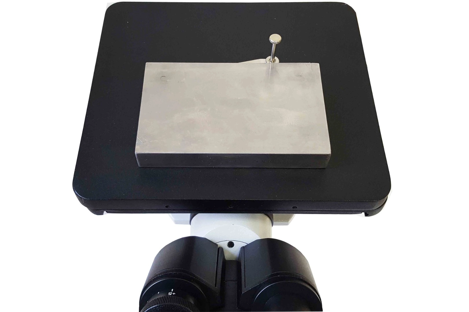 Предметный координатный столик с двумя съёмными дисковыми препаратоводителями с отверстиями Ø10 и Ø20 мм, прижимной лапкой |