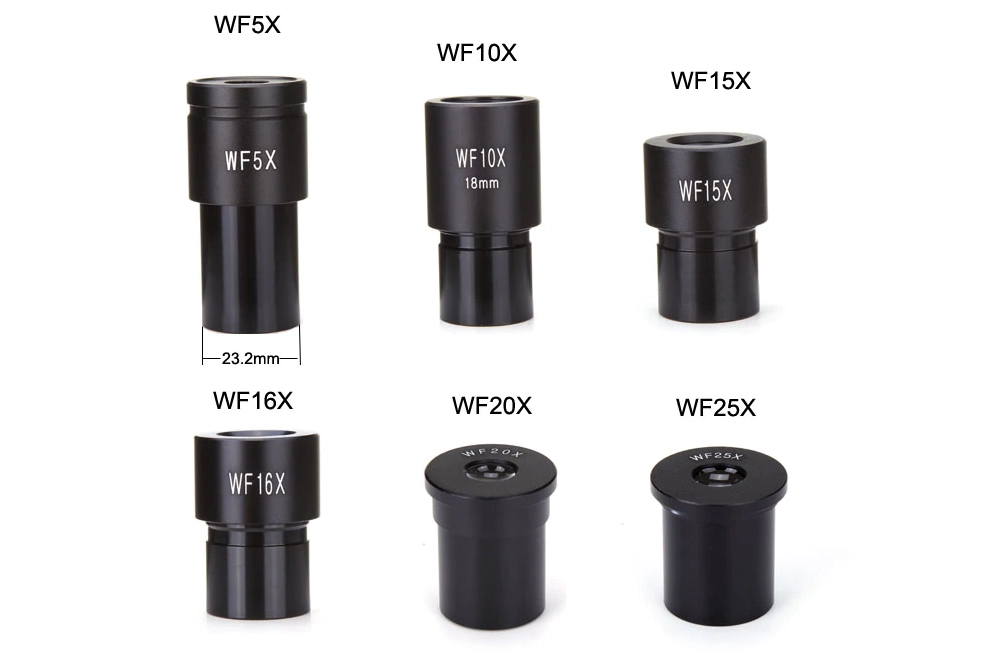 WF5X широкопольный (диаметр поля зрения Ф20 мм; посадочный диаметр D23,2 мм). Может использоваться со всеми микроскопами с посадочным диаметром тубуса 23,2 мм. Высококачественные оптические элементы и цельнометаллический корпус. Может использоваться для металлографических, биологических и др. микроскопов.