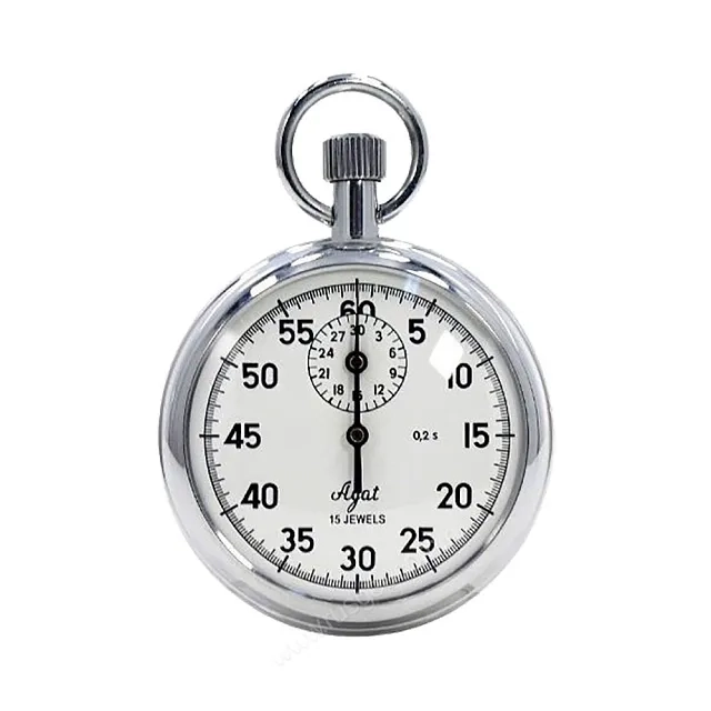 Отсчет времени в секундомере ведется стрелкой по 60-секундной шкале с ценой деления 0,2 секунды. Одновременно с этим производится измерение в минутах на вспомогательном маленьком циферблате. Высокая точность измерений обеспечивается за счет оснащения колебательной системой «баланс-спираль», используемой в карманных часах, с интервалом 0,4 секунды. Для большей наглядности циферблат и стрелки выполнены в контрастном с остальным корпусом черном исполнении.