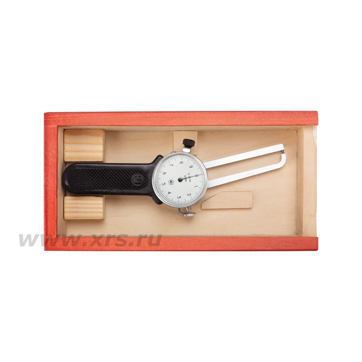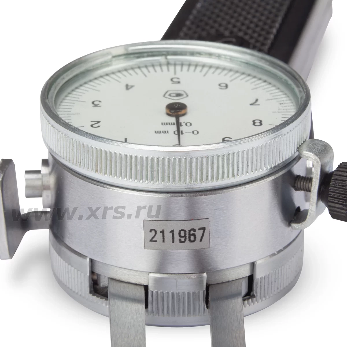 Стенкомер индикаторный С-10Б произведён в соответствии с ГОСТ 11358-89. Используется для определения толщины стенок труб и других изделий, а также для определения наружных размеров небольших деталей. Стенкомер состоит из индикатора часового типа, рукоятки и двух стержней: неподвижного и измерительного. Стержни оснащены сферическими накладками, которые обеспечивают минимальное пятно контакта с поверхностью для точного измерения толщин.