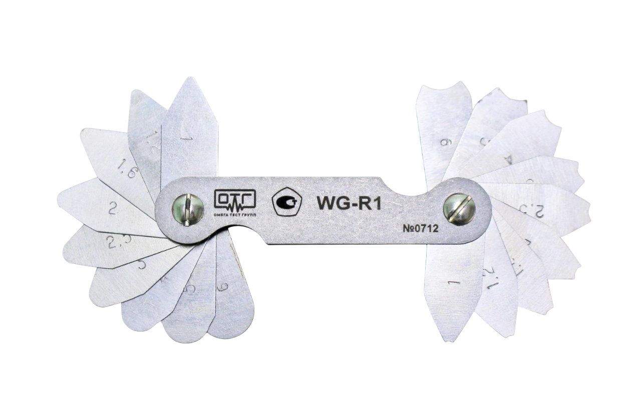 Шаблоны сварщика WG-R1 предназначены для измерений линейно-угловых размеров сварного шва: длины притупления кромок, толщины детали, толщины стенки труб, толщины углового шва, толщина выпуклого углового шва, толщины нормального углового шва, длины дефектов, ширины шва, глубины вогнутостей, глубины скоса кромки, высоты выпуклостей, смещения кромок, глубины подрезов стыкового одностороннего шва, толщины зазора в соединении, ширины зазора между деталями, высоты углового шва, высоты катета углового шва, высоты катета вогнутого углового шва, высоты стыкового шва, плоского угла разделки кромок, плоского угла скоса кромок, чешуйчатости кромок в тавровых, угловых и нахлесточных соединениях шва, а также для воспроизведения толщины и катета углового шва, диаметров отверстий, радиусов выпуклых или вогнутых поверхностей.