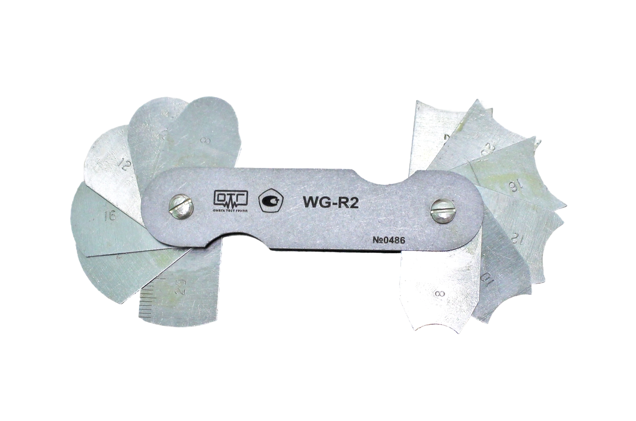 Шаблоны сварщика WG-R2 предназначены для измерений линейно-угловых размеров сварного шва: длины притупления кромок, толщины детали, толщины стенки труб, толщины углового шва, толщина выпуклого углового шва, толщины нормального углового шва, длины дефектов, ширины шва, глубины вогнутостей, глубины скоса кромки, высоты выпуклостей, смещения кромок, глубины подрезов стыкового одностороннего шва, толщины зазора в соединении, ширины зазора между деталями, высоты углового шва, высоты катета углового шва, высоты катета вогнутого углового шва, высоты стыкового шва, плоского угла разделки кромок, плоского угла скоса кромок, чешуйчатости кромок в тавровых, угловых и нахлесточных соединениях шва, а также для воспроизведения толщины и катета углового шва, диаметров отверстий, радиусов выпуклых или вогнутых поверхностей.