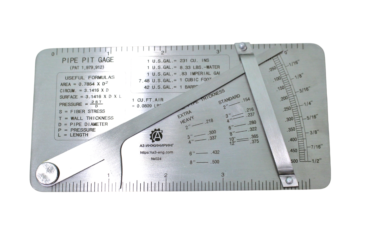 Шаблон состоит из: основной пластины с измерительной шкалой в дюймах с формулами и таблицами, подвижного индикатора с острием.