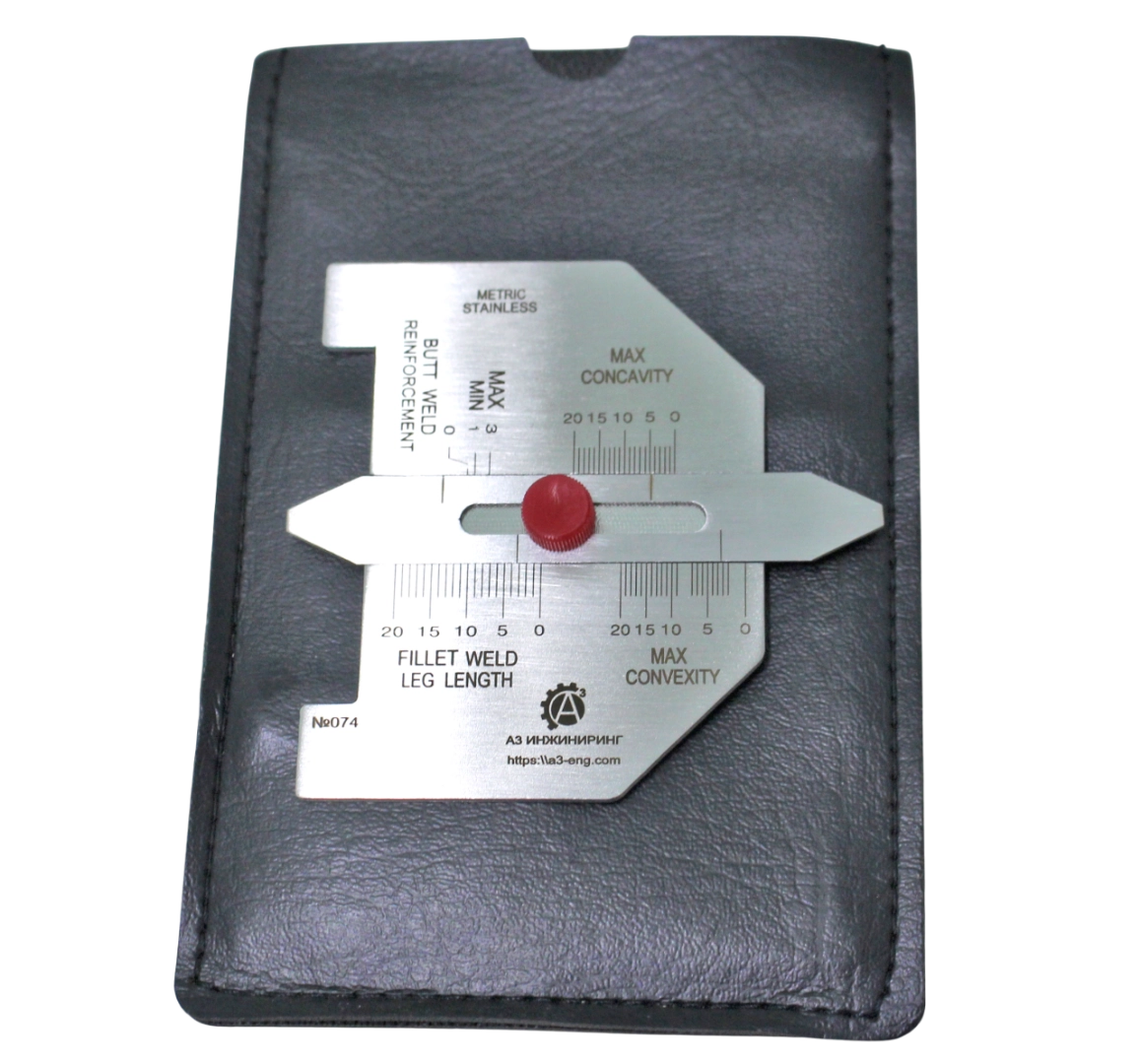 Измерительный шаблон сварщика WG7 изготавливается в соответствии с ТУ 427600-088-4407661-2017 «Универсальные шаблоны сварщика». Он предназначен для измерения высоты углового шва, высоты стыкового шва, толщины выпуклого и вогнутого углового шва.