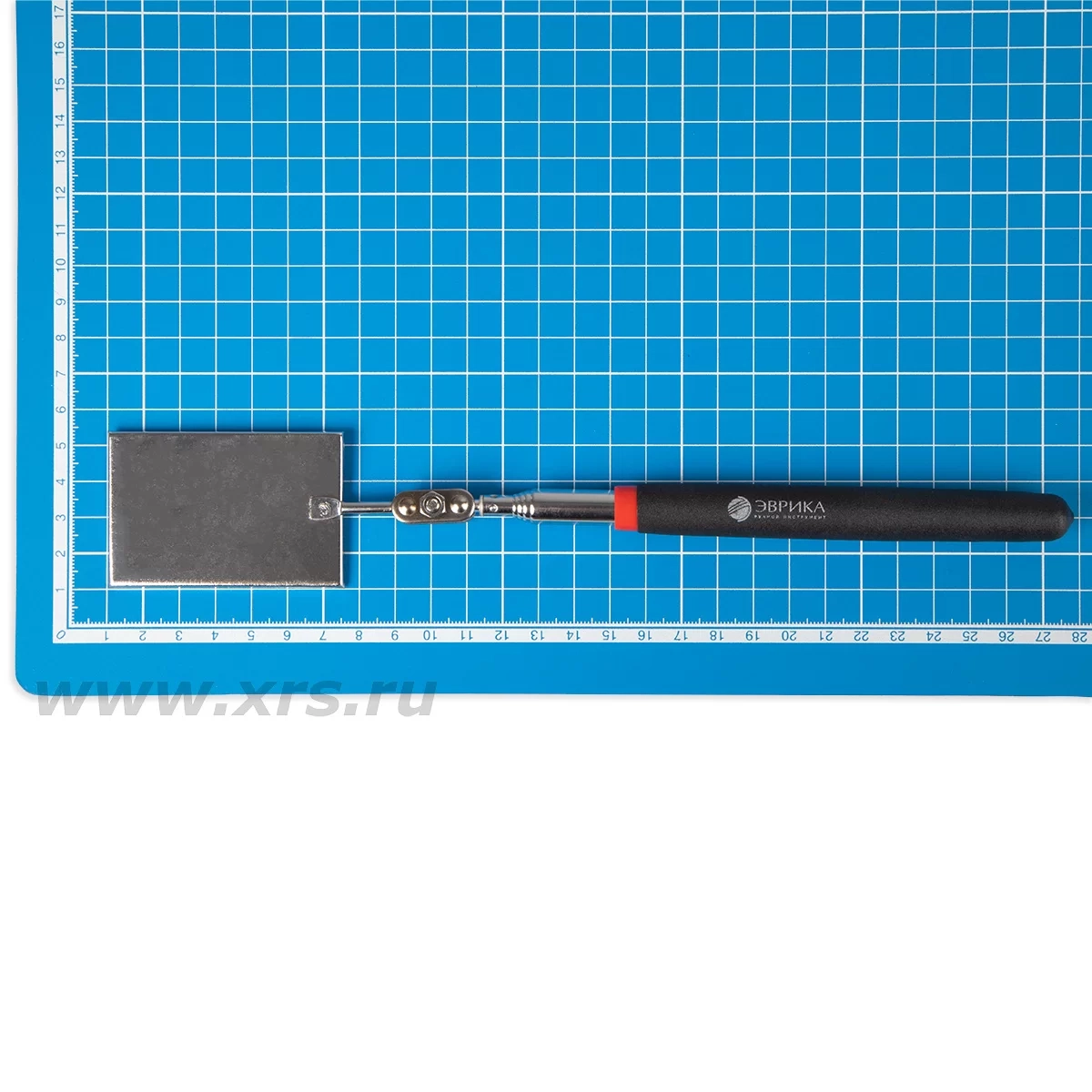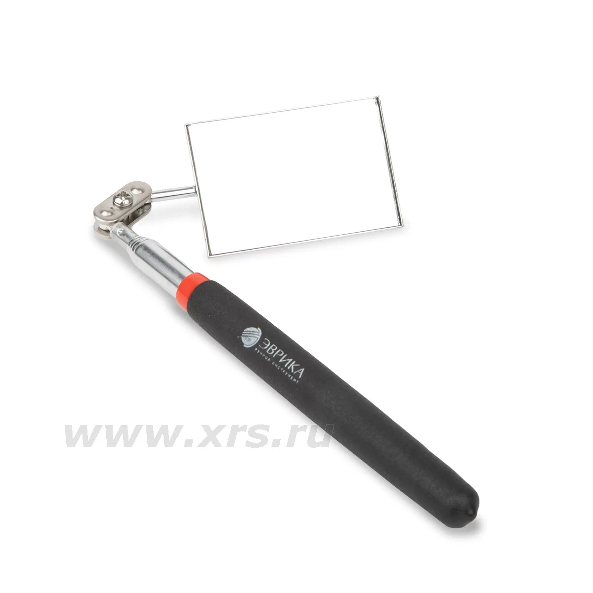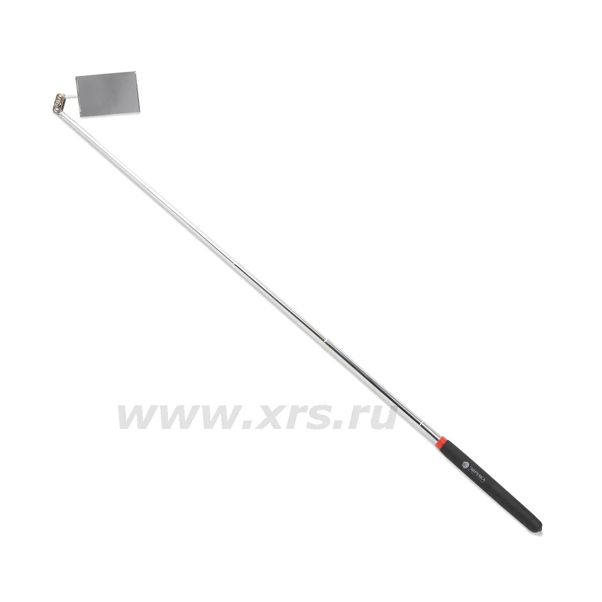 Зеркало в металлической оправе соединяется с телескопической штангой через шарнирный механизм и может вращаться вокруг своей оси на 360°. Такое устройство позволяет подобрать оптимальный угол наклона и рассмотреть объект с разных ракурсов. Рукоятка зеркала выполнена из винила, не скользит в руке.