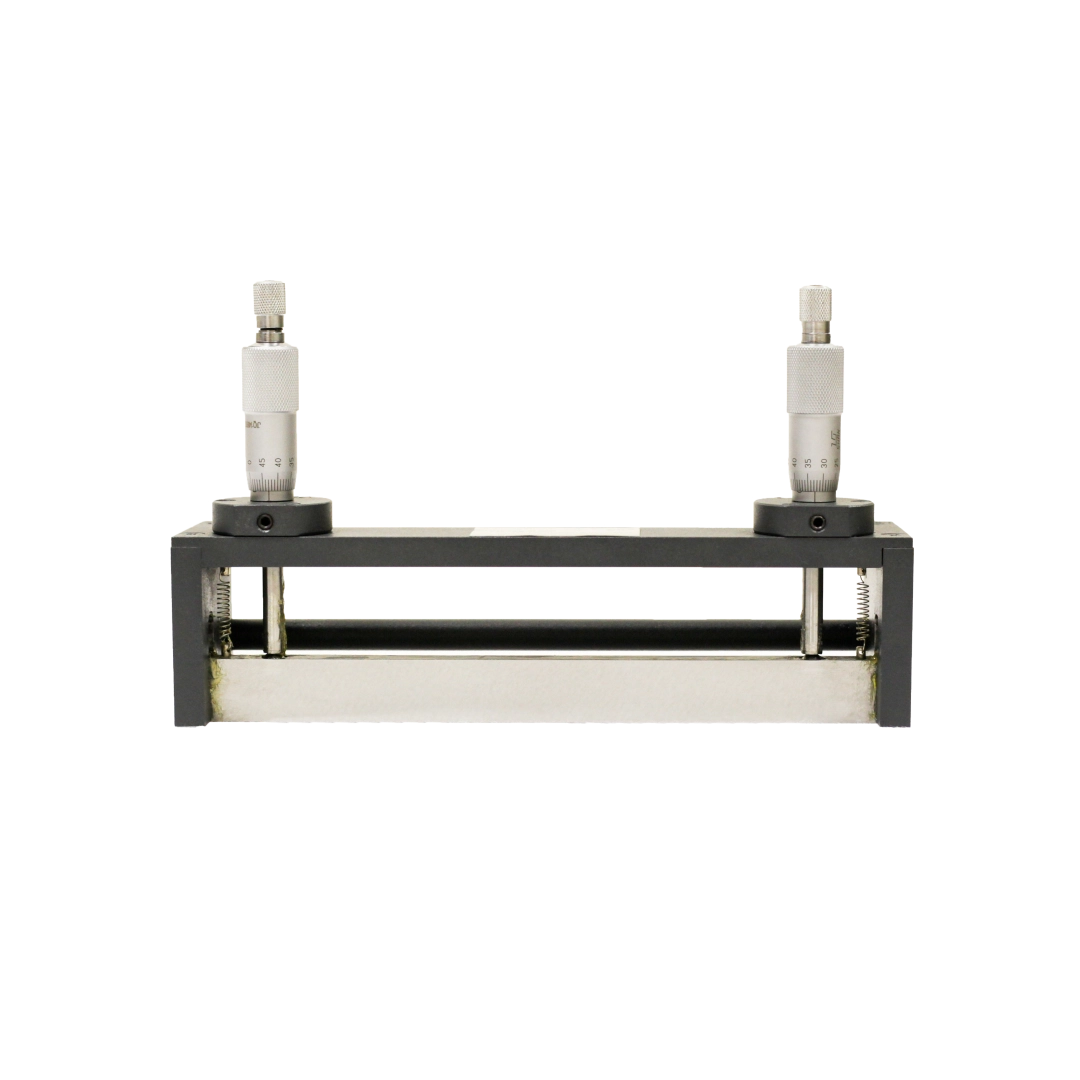 С помощью микрометрических головок выставить необходимую высоту паза. Аппликатор установить на испытательную пластину, перед пазом налить достаточное количество испытуемого материала и перемещать аппликатор с равномерной скоростью.