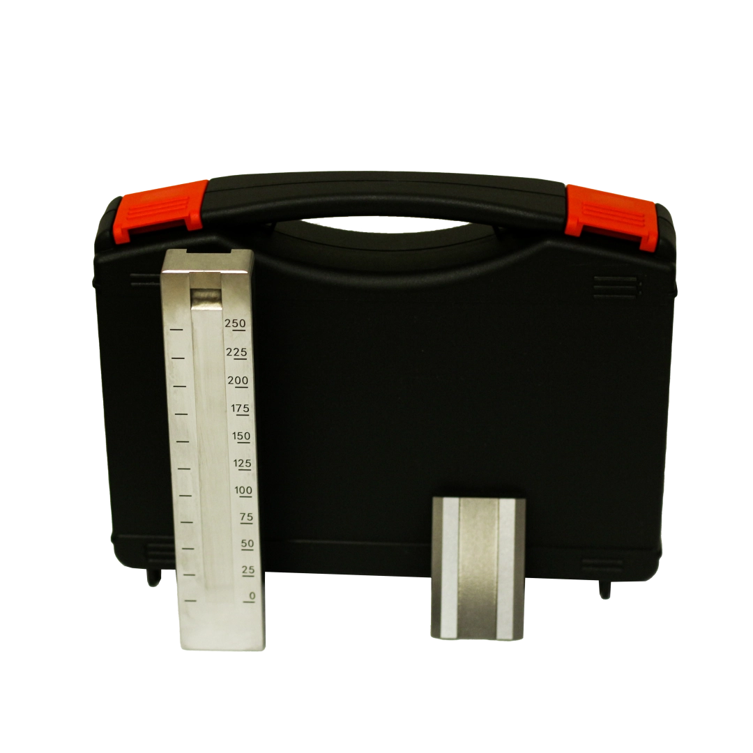 Прибор состоит из стальной измерительной плиты и скребка. На измерительной поверхности плиты вдоль нее выполнен клинообразный паз с равномерно увеличивающейся глубиной от «0» до максимального предела измерения прибора. По краям паза нанесена цифровая шкала. Глубина паза соответствует шкале прибора.