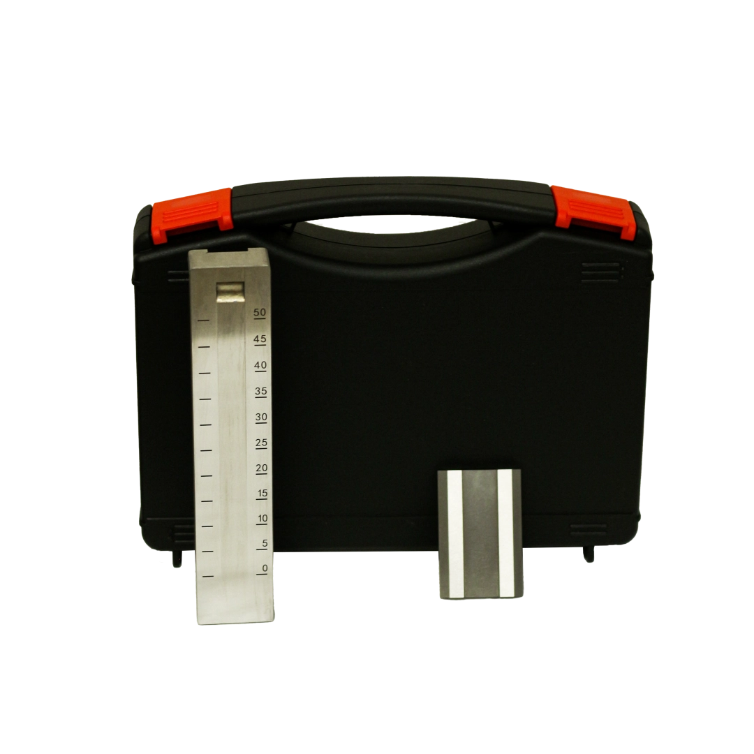 Прибор состоит из стальной измерительной плиты и скребка. На измерительной поверхности плиты вдоль нее выполнен клинообразный паз с равномерно увеличивающейся глубиной от «0» до максимального предела измерения прибора. По краям паза нанесена цифровая шкала. Глубина паза соответствует шкале прибора.