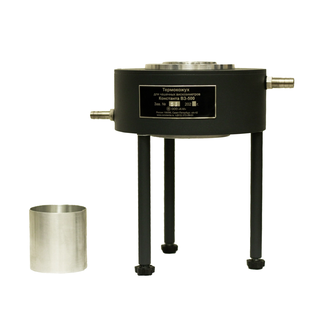 Представляет собой выполненный из алюминиевого сплава герметичный цилиндрический резервуар с двумя штуцерами (для обеспечения циркуляции поддерживающей заданную температуру жидкости) и сквозным отверстием под чашечный вискозиметр.