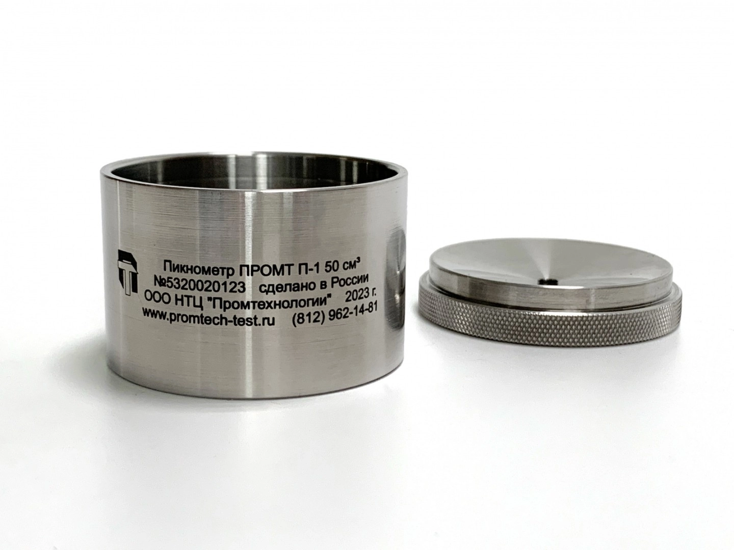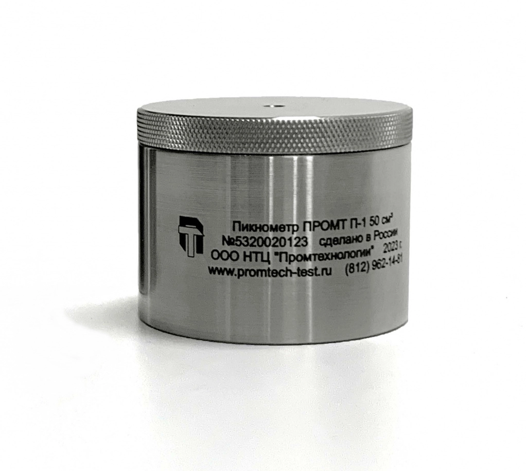 Пикнометр из нержавеющей стали ПРОМТ ПН-50 (прежнее название Пикнометр ПРОМТ П-1 (50 см)) используется для определения плотности лакокрасочных и аналогичных материалов с низкой и средней вязкостью по ГОСТ 31992.1-2012 и ISO 2811-1. В основу метода положено определение массы контролируемой жидкости помещенной в прибор заданного объема при требуемой температуре. Результат измерения рассчитывается в г\см3 по формуле включающей в себя объем прибора, массу пустого пикнометра и заполненного материалом, а также температуру испытания. Температура воздуха, материала и прибора является важным параметром при проведении испытания и определяется ГОСТ либо нормативными документами на контролируемую жидкость. Представляет из себя модифицированную версию пикнометра NOVOTEST П-1.