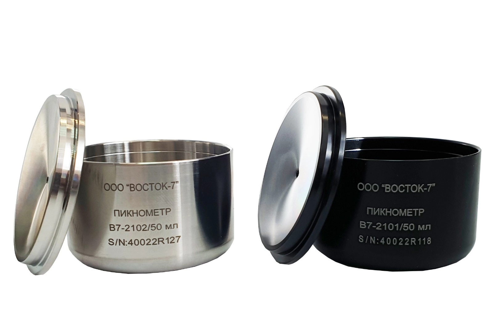 Пикнометр вместимостью 100 мл подходит для большинства измерений, пикнометр вместимостью 50 мл чаще применяется для определения плотности пастообразных продуктов.